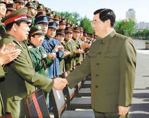 中新网9月14日电 据解放军报报道,中共中央总书记、国家主席、中央军委主席胡锦涛,近日在新疆军区考察工作时要求部队毫不放松地抓好军事斗争准备,始终保持高度警惕,从难从严从实战出发训练部队,积极推进机械化条件下军事训练向信息化条件下军事训练转变。