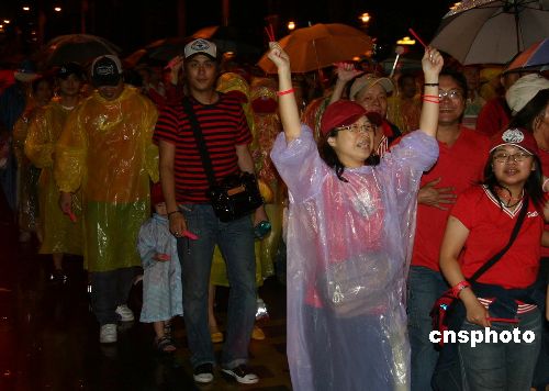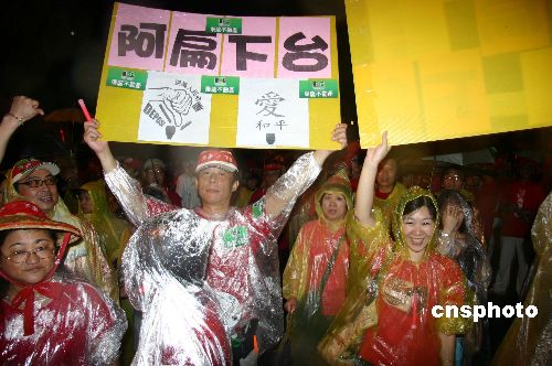 9月15日,由民进党前主席施明德发起的“百万人民反贪腐倒扁运动”进入第七天,数十万台湾民众于晚间冒雨举行反贪腐荧光大游行,要求陈水扁下台。中新社发 肖龙联 摄