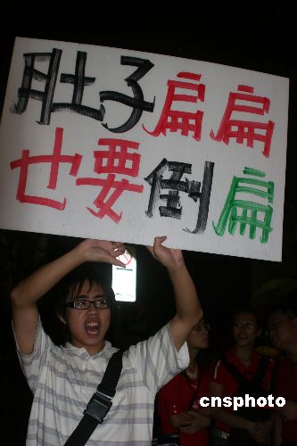 九月十五日晚,反贪腐倒扁荧光大游行在台北举行。游行在深夜落幕,部分民众转往台北车站前继续静坐。倒扁总部宣称参加民众突破100万,警方估计逾36万。中新社发 董会峰 摄