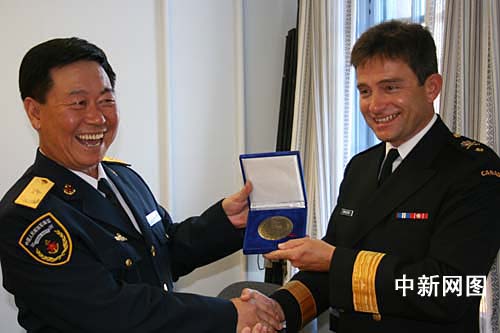 上午,中国海军编队总指挥、北海舰队副司令员王福山少将会见加太平洋舰队司令唐纳森准将,并就促进两军交流等问题交换看法。