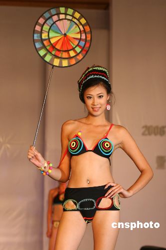 9月26日晚,2008奥运主题泳装大赛在2006辽宁国际服装时尚文化周上亮相,各种时尚新颖的泳装让爱美之士大饱眼福。中新社发 赵敬东 摄
