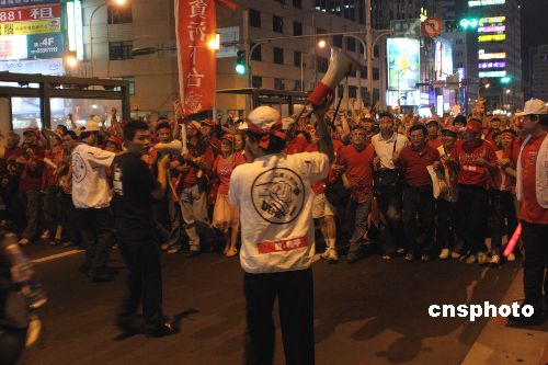 9月27日晚,参加台湾“百万人反贪腐运动”民众二度移师台北车站静坐。图为参加民众从凯德格兰大道转往台北车站的情形。此前的9月15日,静坐民众参加了“荧光围城”行动后曾转往台北车站,20日返回凯道。中新社发 黄少华 摄