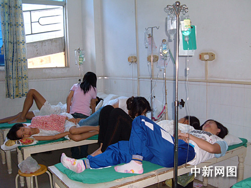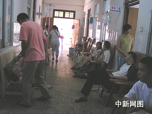 图片说明:1/由于“毒”田螺事件病人多,医院只好临时启用走道打点滴