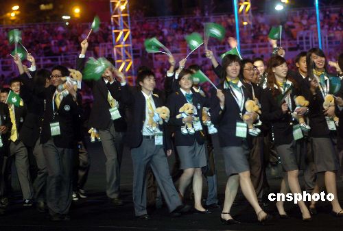 十月七日晚,澳门特首何厚铧在澳门运动场宣布:2006澳门第一届葡语系运动会开幕。来自四大洲十二个国家和地区的运动员将在“一种语言联系,四洲体育生辉”的感召下,争夺八个比赛大项的四十八枚金牌。开幕式后举行了大型文艺表演《梦想的起点》。中新社发 史利 摄