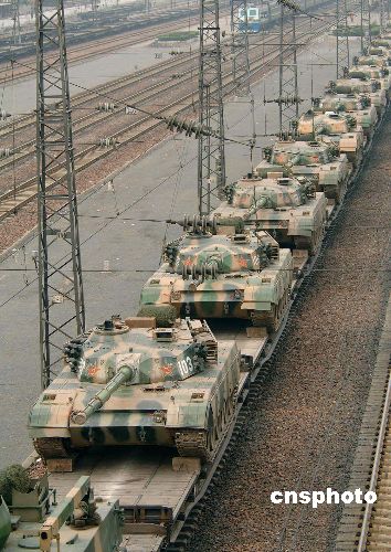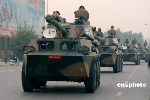 10月13日,代号为“确山-2006”的实兵实弹战术演练考核进入第二天。凌晨,参加演练的步兵、炮兵、防空兵、工化、防化及后勤保障部(分)队,在师指挥部的统一布置下,分别以铁路输送和摩托化开进的方式,冲破中原秋日的晨雾,在“蓝军”电磁干扰、空中侦察、火力袭扰等复杂情况下,积极采取有效对抗手段和防护措施,分多路、多梯次向作战地区开进。至发稿时至,万余名官兵,千余台装备车辆,全部安全抵达宿营地区。中新社发 吴苏琳 摄