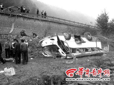 事故中轻伤者李文良是河南许昌县公安局刑警大队大队长。他说,他们此次是由许昌县委组织部组织到延安参观学习的,共28人,来自全县十多个部门,都是先进分子。“事故发生时,下着小雨,车速较快。”李文良称,当他们感觉车体向右倾斜时,司机立即向左打方向盘,但已经来不及了。“汽车先是撞上路边一行人,然后撞断护栏,坠入河中。”汽车翻滚的过程中,坐在前面的一名女同事被摔出车外,后证实不幸遇难。