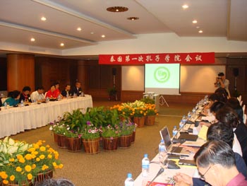 会议由泰国皇太后大学校长万才博士主持。中国驻泰使馆教育组官员庞利就泰国孔子学院的基本架构和发展思路作了详尽的解说,同时就中泰双方合作协议的签订、启动经费预算和决算报告编制、明年工作计划以及各高校如何办出各自孔子学院特色等问题回答了与会代表的提问。与会的泰中双方代表还简要介绍了各自孔子学院建设工作的进展情况,并就共同关心的问题进行了交流。