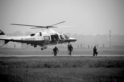 警笛长鸣,R22和R44型警用直升机冲向长空。