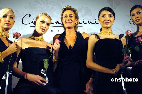 意大利珠宝设计师以个人名字命名的Cinzia Maini的珠宝首饰,10月25日在香港展出,来自黄金制品家族的设计师利用家族制造经验,突破传统珠宝概念和形态,巧妙地运用材料,设计出一系列刚中带柔的珠宝,将黄金珠宝的艺术无限延伸。图为外籍模特10月25日在香港展示Cinzia Maini的珠宝首饰。中新社发 王丽南 摄