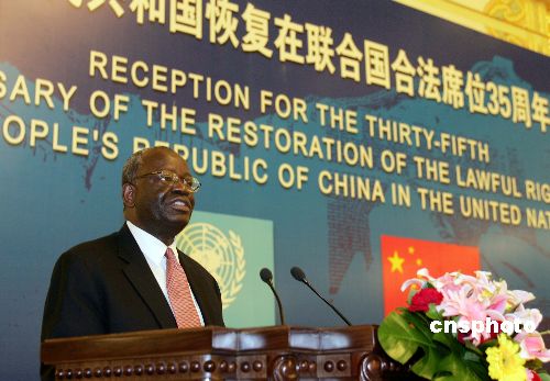 纪念中华人民共和国恢复在联合国合法席位三十五周年招待会十月二十五日在北京人民大会堂三楼金色大厅举行。中新社发 毛建军 摄