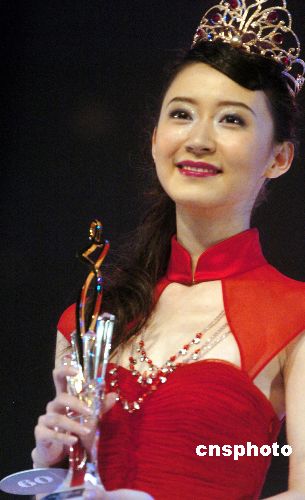 凤凰卫视“2006中华小姐环球大赛”总决赛10月28日晚在香港亚洲国际博览馆举行,12名华人佳丽竞选中华小姐冠、亚、季军。最后来自来自中国湖北的9号佳丽黄橙子获得冠军(中)、来自澳大利亚的14号佳丽刘梓娇获得亚军(左)、来自中国重庆的23号佳丽邱叶获得季军。中新社发 王丽南 摄