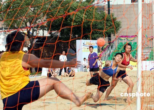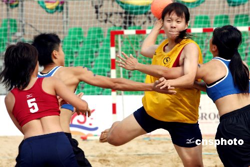 香港沙滩节2006-国际女子沙滩排球及手球挑战赛,11月3日至12日在九龙公园举行,3日,国际女子沙滩手球挑战赛率先开锣。中新社发 洪少葵 摄