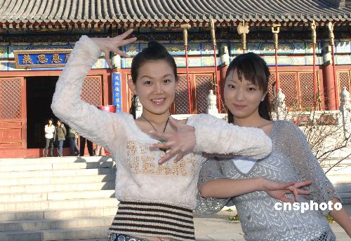 北京姑娘王倩和薛小楠,在北京大观园参加北京赛区“红楼梦”大型选秀活动。
