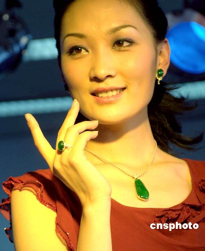 十一月八日,2006中国国际珠宝展在北京中国国际展览中心开幕。世界各地五百家参展商参加了展览,其中来自台湾的五十家珠宝商在展厅专区格外引人注目。图为由台湾宝之艺文化事业有限公司及珠宝世界社长丘维鐘先生,组织的“珠宝美人第二届摄影比赛”,请北京靓丽模特在T字台上,展示台湾的王月要珠宝、禧饰珠宝、俪山珠宝、皇佳珠宝、绮丽珊瑚等五家珠宝商展示珠宝新产品,吸引了北京数十名摄影者参加比赛。中新社发 邹宪 摄