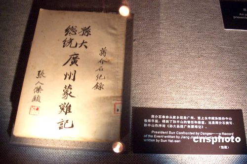 十一月十二日,大陆收藏孙中山文物最多的专题纪念馆——上海孙中山文物馆正式向公众开放。位于上海香山路中山故居旁侧的三层洋楼内的“孙中山文物馆”,展品有三百余件,包括孙中山、宋庆龄亲笔签名的结婚照、孙中山的名片等珍品。
