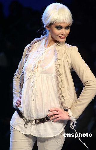 正在北京举行的中国国际时装周十一月十七日上演意大利HYBRIS春夏时装发布会,为当日的中国国际时装周意大利日增色。中新社发 毛建军 摄