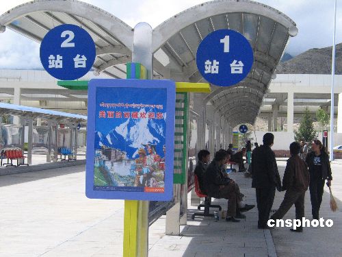 2006年6月28日,拉萨火车站91路公交车已开始运营。7月1日火车开通后,预计每天到达火车站的旅客将达4000多人。为方便旅客出行,从拉萨火车站到市区将开通82路、83路、91路等9条公交线路。由于目前通往火车站的柳梧大桥尚未完工,除91路公交车正常运营外,其他8条公交线路2007年将陆续开通。中新社发 吴芒子 摄