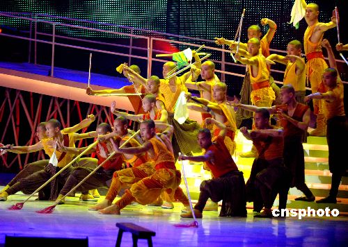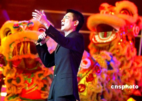 为中国喝彩,为香港喝彩!“为中国喝彩──香港回归九周年大型综艺晚会”二十九日晚在红磡香港体育馆隆重举行。晚会星光熠熠,多名内地及香港的著名艺人聚首一堂,献歌献技,与香港各界为香港回归九周年一起喝彩。中新社发 蔡蔓莉 摄
