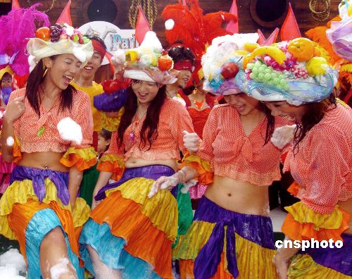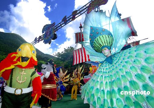 香港海洋公园3日向记者展示即将推出极具岛国风情的“加勒比海夏水礼”部分节目﹐以取得宣传效果。7月15日至9月3日市民﹑游客将在海洋公园享受到这个狂热的嘉年华活动。中新社发 宋吉河 摄