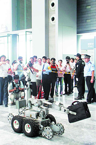 与此同时,西城分局立即启动了《处突预案》,分局刑侦支队、驻区特警大队迅速赶到现场,刑警立即使用防爆机器人、X光检查仪、防爆杆等对可疑物品进行探测,巡查支队和辖区派出所民警立即封锁了现场。