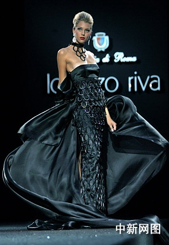 2006年7月12日,意大利罗马,模特在2007秋冬女装成衣展展示Gattinoni设计的服装。