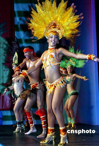 香港海洋公园15日拉开加勒比海夏水礼序幕﹐以狂热桑巴舞﹑凉爽至极的湿身游戏等活动﹐让游客感受岛国风情。中新社发 宋吉河 摄