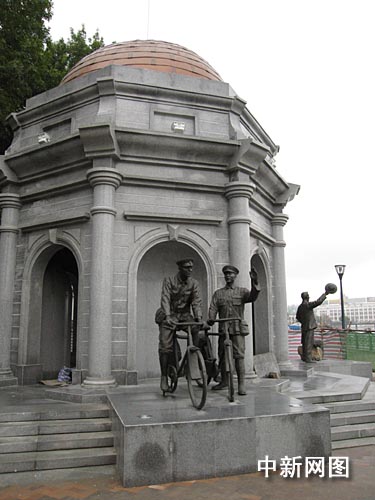 中新网天津七月十八日电 (记者 田齐)一组以“邮路漫漫”为主题的雕塑近日在“中国第一条邮路”的诞生地——天津台儿庄路与大同道交口处落成。