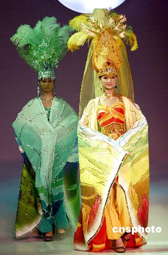 七月十九日,“丝路霓裳Ⅱ”新疆军区文工团高级服装设计师孙秀琴服饰设计作品专场发布会在乌鲁木齐环球大酒店会展中心举行,发布会共分为四个部分,依次为木卡姆随想、古韵新装、走进时尚及永远的古丽。整场发布会在古老与现代的气氛中向观众展示了新疆服装设计的现场与趋势。中新社发 刘新 摄