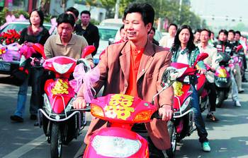 结婚是人一生中的大事,没有了名贵奢华的小轿车,新娘没意见吗?对此,新娘袁雅瑾满脸幸福地表示:“这有什么关系啊,我觉得这种形式很好,既浪漫又有创意。而且周培对我很好,这才是最重要的。”周培所在电动车行砂子塘店店长李新龙对周培用电动车迎亲的方式大加赞许,并带队组织店里的员工参加迎亲队伍。他同时也在网上发了帖子,得到了十多位电动车用户的支持,他们纷纷前来参加迎亲活动。