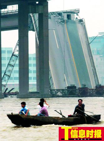 据长大公司有关人士透露,目前该公司正在九江大桥进行佛开高速拓宽改造工程,准备在新旧两桥中间再建设一座新桥。他透露,事故发生在旧桥南端起第12、13桥墩附近,导致近200米钢结构桥面坍塌,有4名正在该桥墩处施工的工人被压掉进江里,到现在还没捞上来,估计凶多吉少。