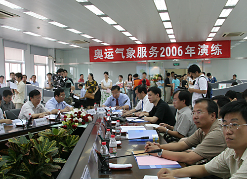 中新网7月8日电 据中国气象局网站消息,今天上午9时,筹备多时的全国气象部门奥运气象服务2006年演练活动在北京奥运气象服务指挥中心(北京市气象局)正式拉开了帏幕。