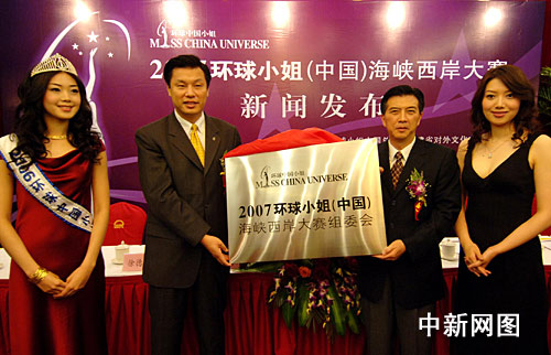 三十日上午,“二零零七环球小姐(中国)海峡西岸大赛”组委会揭牌仪式在福州举行,此次大赛由福建省对外文化交流协会与环球小姐中国总部联合主办,中国新闻社福建分社、北京中新雅视文化发展有限公司承办。福建省政府新闻办主任朱清、中国环球小姐总部总裁秦臻、中国新闻社社长助理张平、中国新闻社福建分社社长徐德金、2003年环球中国小姐吴薇、2006年环球中国小姐高英慧出席该新闻发布会。