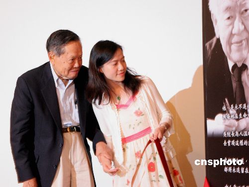 七月五日,杨振宁夫妇在台北参加第三届吴大猷科学普及著作奖颁奖仪式,引来此间媒体广泛关注。中新社发 邹辉 摄