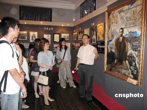 七月八日,正在上海参加台胞青年夏令营的近百名台湾大学生参观了上海交通大学收藏的、描述一九一二年孙中山在交大演讲时规划“青藏铁路”的油画珍品。青藏铁路与上海交大之间的渊源,尤其吸引台湾学生关注。中新社发 许晓青 摄