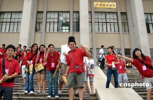 七月九日,以“龙脉相承、青春中华”为主题的二零零六年海峡两岸台胞青年夏令营活动在华侨大学闭幕。当天,来自美国、巴西和中国大陆的八十七名台湾籍大学生来到华侨大学参观交流,并与华侨大学的学生一起欢聚联欢。中新社发 傅丹丹 摄