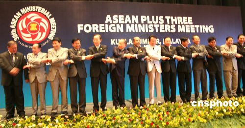 七月二十六日下午,“东盟加三”外长以合影“全家福”拉开会议帷幕。中新社发 苏祥新 摄