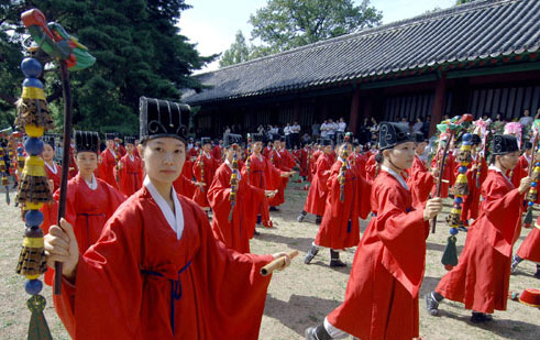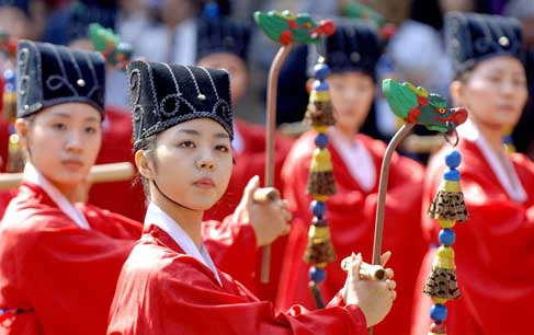 9月25日,在韩国首都首尔,传统舞蹈剧团在纪念孔子的活动中表演。