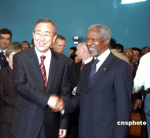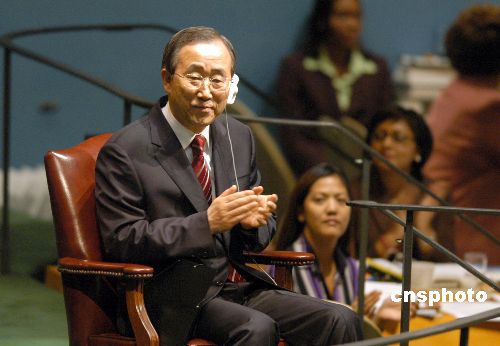 十月十三日,第六十一届联大举行全体会议,一百九十二个会员国的代表以鼓掌方式通过任命决议,潘基文被正式任命为联合国第八任秘书长。中新社发 谭宏伟 摄