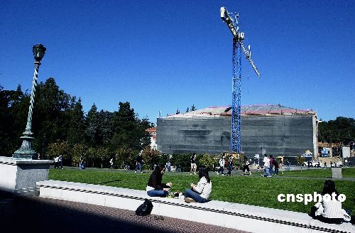 10月21日,正在建设中的美国柏克莱加大东亚图书馆。这是全美第一座为东亚图书馆藏和研究服务而设计的大楼,造价5100百万美元,2005年8月破土动工,计划2007年9月完成。中新社发 陈钢 摄