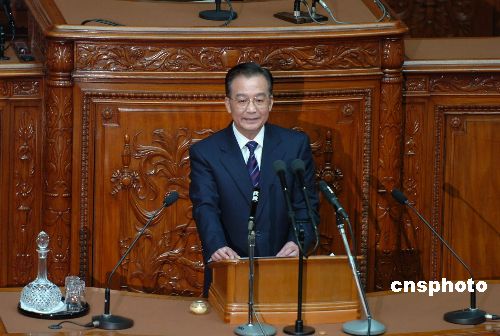 温家宝在日本国会发表题为<为了友谊与合作>演讲
