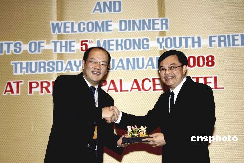 一月十七日,泰国社会发展与人类保障部副部长蓬得·炳巴提在曼谷礼节性会见了来自大湄公河次区域的中国、缅甸、泰国、柬埔寨、老挝和越南六国的青年代表,并分别与中国等六国青年代表团合影。中新社发 孙宇挺 摄