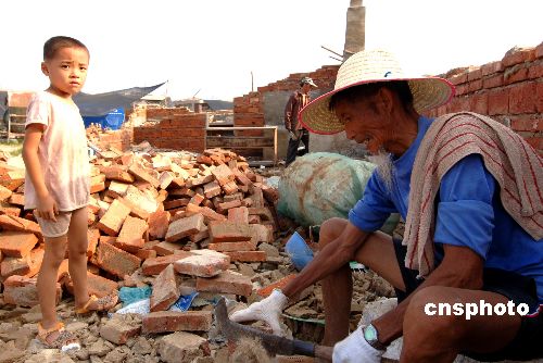 受“桑美”台风的影响,龙安开发区沿海的民房几乎成为一片废墟,目前,灾区生产自救工作已经陆续展开。中新社发 王东明 摄