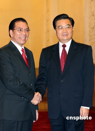 八月二十二日,中共中央总书记、中国国家主席胡锦涛在北京人民大会堂主持仪式欢迎越南共产党中央总书记农德孟。中新社发 廖文静 摄