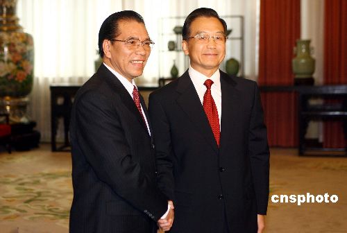 八月二十三日,中国国务院总理温家宝在北京会见来访的越南共产党中央委员会总书记农德孟。中新社发 盛佳鹏 摄