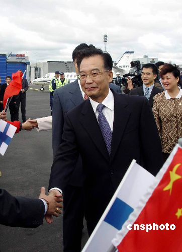 九月九日,中国国务院总理温家宝乘专机抵达芬兰首都赫尔辛基,与前来机场迎接的当地华侨华人和驻芬使馆工作人员亲切握手。温总理将在此停留数日,出席第九次中欧领导人会晤、第六届亚欧首脑会议并对芬兰进行正式访问。中新社发 孙宇挺 摄