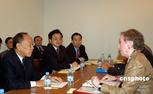 正在纽约出席第六十一届联合国大会的中国外长李肇星,当地时间九月十九日会见了英国外交大臣贝克特。双方讨论了苏丹和伊朗核问题。中新社发 谭宏伟 摄