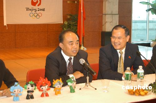 北京奥运“福娃全球送吉祥”活动,九月二十四日将在美国波士顿美国国家橄榄球大联盟(NFL)的一场比赛中首次举行,从而拉开“福娃全球送吉祥”系列推广活动的帷幕。图为在中国驻纽约总领馆举行的本次活动情况介绍会。中新社发 刘小青 摄