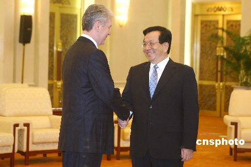九月二十七日,中国国家副主席曾庆红在北京人民大会堂会见俄罗斯总统办公厅主任谢尔盖·索比亚宁。中新社发 盛佳鹏 摄