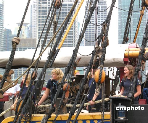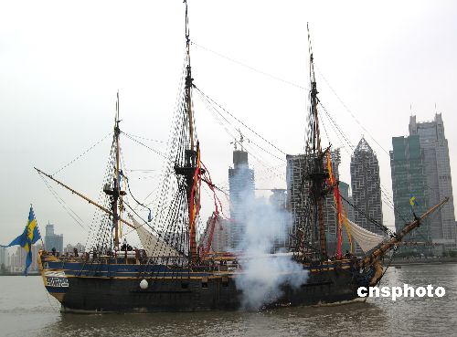 十月二十八日,在震耳欲聋的礼炮声中,在上海停留六十天的瑞典“哥德堡号”仿古帆船缓缓驶离上海国际客运中心码头。作为瑞典的“形象大使”,“哥德堡号”仿古帆船经过近一年的艰苦航行,于八月二十九日抵达了它全球航行的终点站上海。在沪期间,“哥德堡号”共吸引到八点三万人次登船参观。中新社发 李佳佳 摄