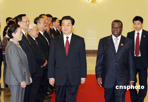 中国国家主席胡锦涛十一月一日在北京人民大会堂举行仪式,欢迎来访的几内亚比绍总统维埃拉。中新社发 毛建军 摄